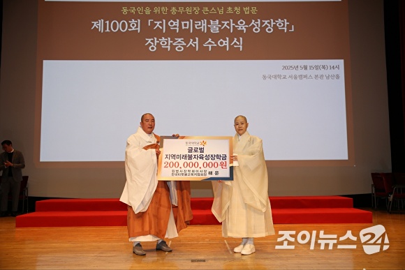 원법사장학회 이사장 해운 스님은 15일 동국대학교에서 열린 '지역미래불자육성장학 100회 수여식'에 참석해 장학기금 2억 원을 전달했다. 이 기금은 범불교 차원의 인재 양성을 위한 동국대 장학사업에 사용될 예정이다.
