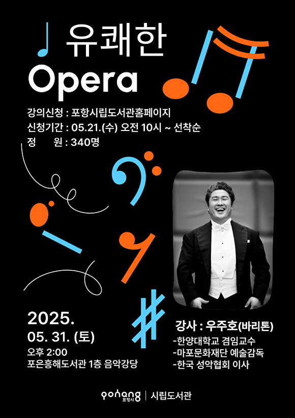 댓글 쓰기 제목 포항시, 포은흥해도서관서 오페라 강연 '유쾌한 Opera' 개최